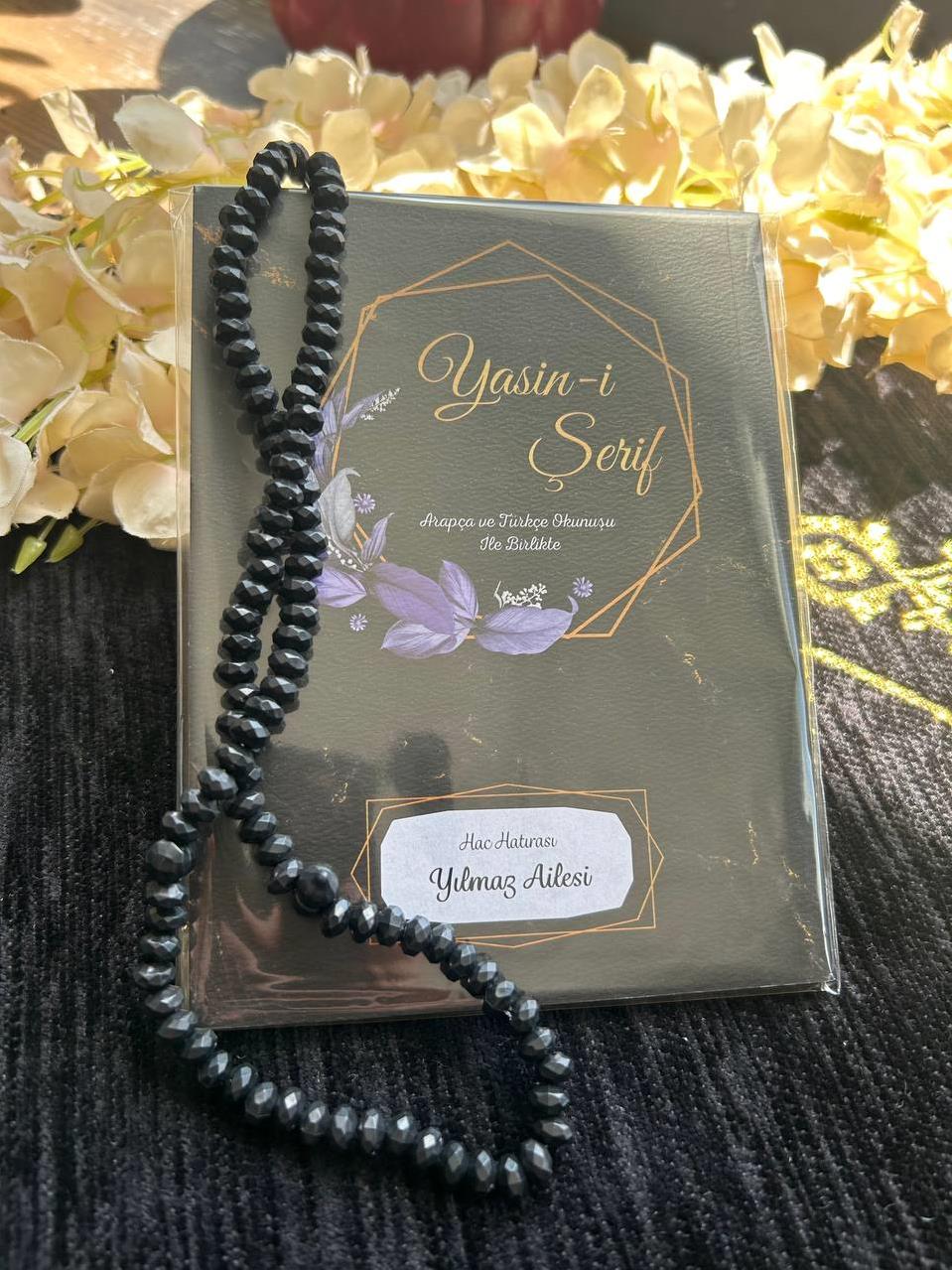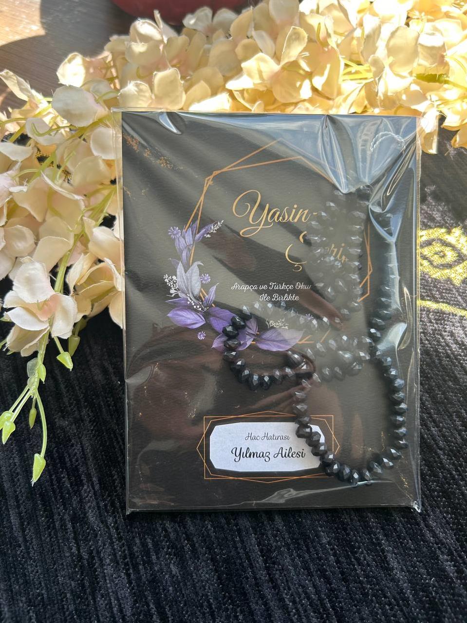 Çanta Boy 80 Sayfa İsim Yazılı Yasin Kitabı, Tesbih ve Şeffaf Ambalaj